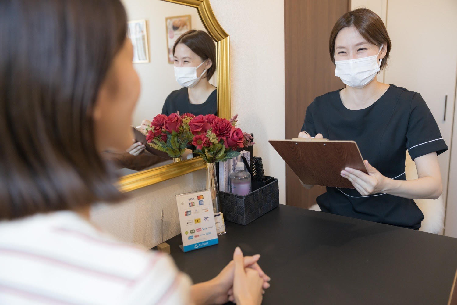ご来店後、まずはカウンセリングを通して、しわやたるみなどのお悩みや理想の状態をしっかりお伺いします。